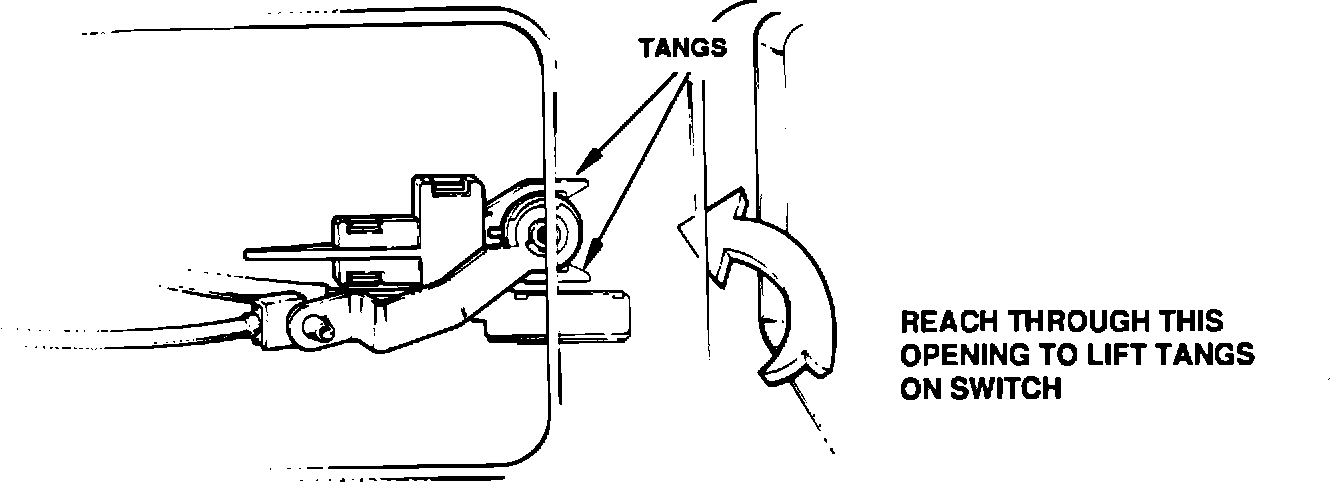NOTE: Do not force the switch. To release the plastic tangs, reach through the adjacent access hole and and gently lift each tang.