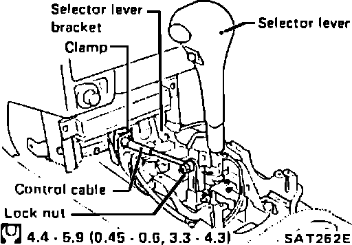 ^ Always adjust control cable when control cable is removed from selector lever or manual shaft.