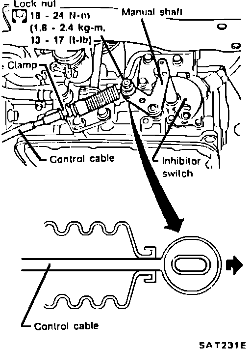 3. Attach control cable to manual shaft and clamp control cable to bracket at transaxle.