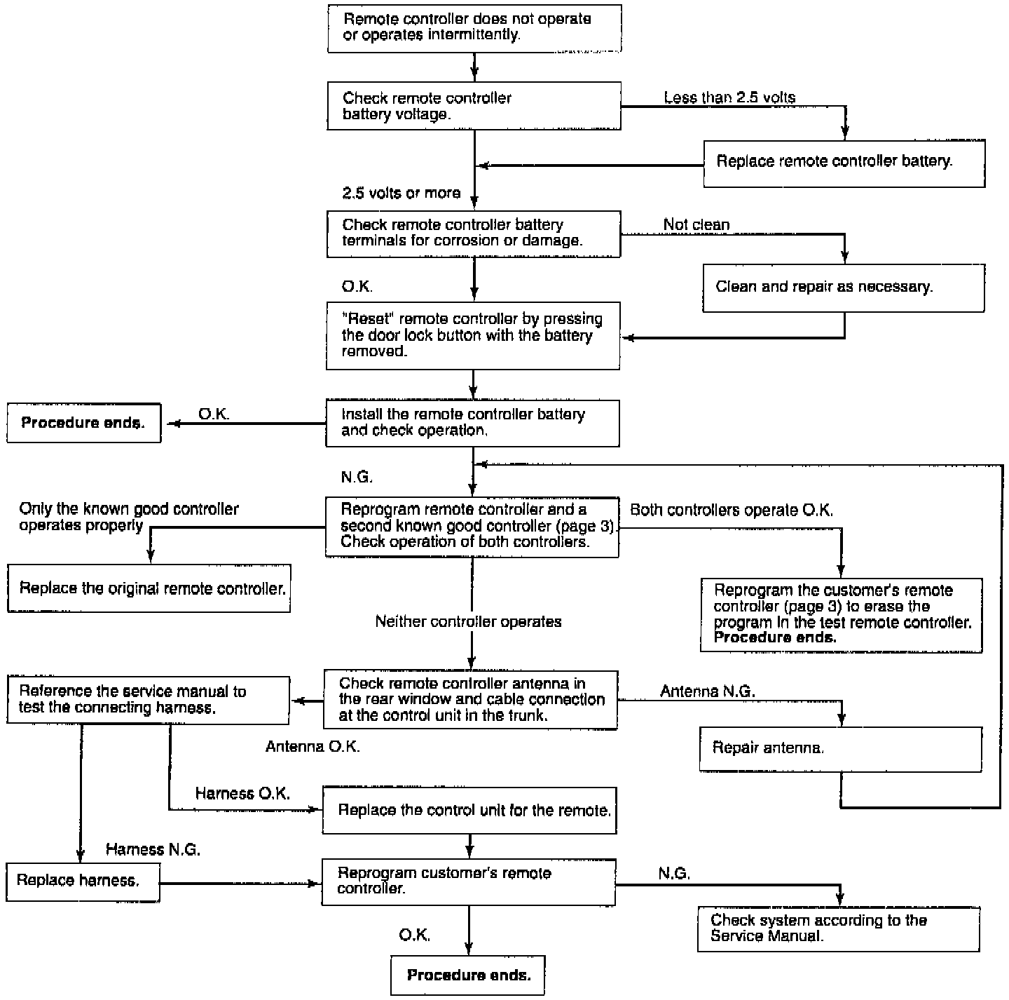 General Keyless Entry Remote Controller Troubleshooting Procedure