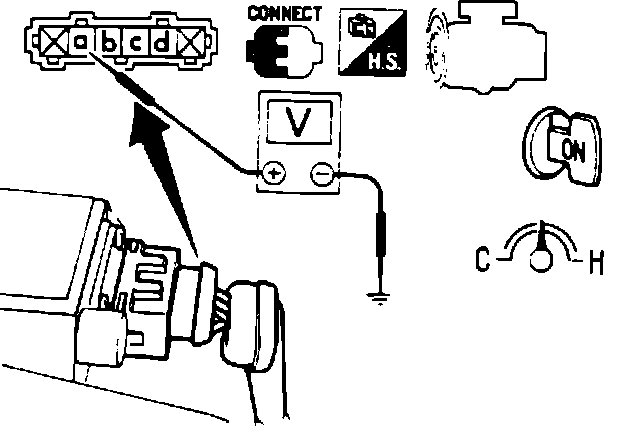3. Check voltage between terminal B and ground, Fig. 202.
