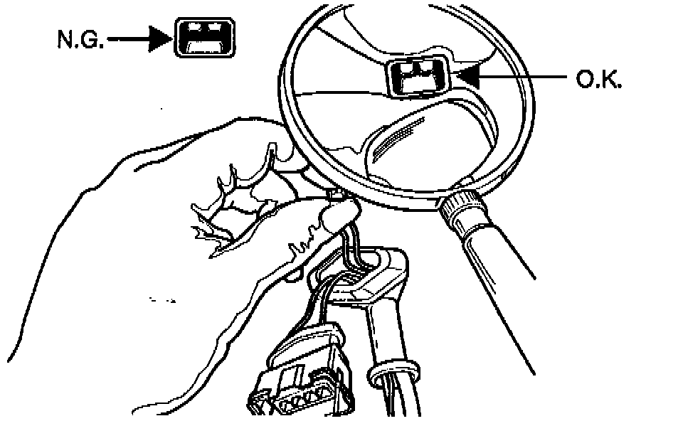 5. If any of the pins appear to be damaged, or if the wire is not properly crimped onto the female pin the terminal pin must be replaced. The terminal pin connector P/N is J38751-50. The wire seal P/N is J38751-48. Both parts are available in the Kent Moore terminal repair kit. Crimp and solder the new terminal pin on to the harness wire.