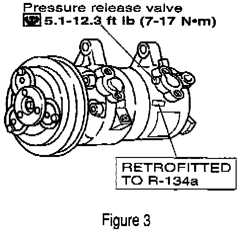 31. Remove and discard the existing pressure relief valve from the high pressure side (compressor side) flange.