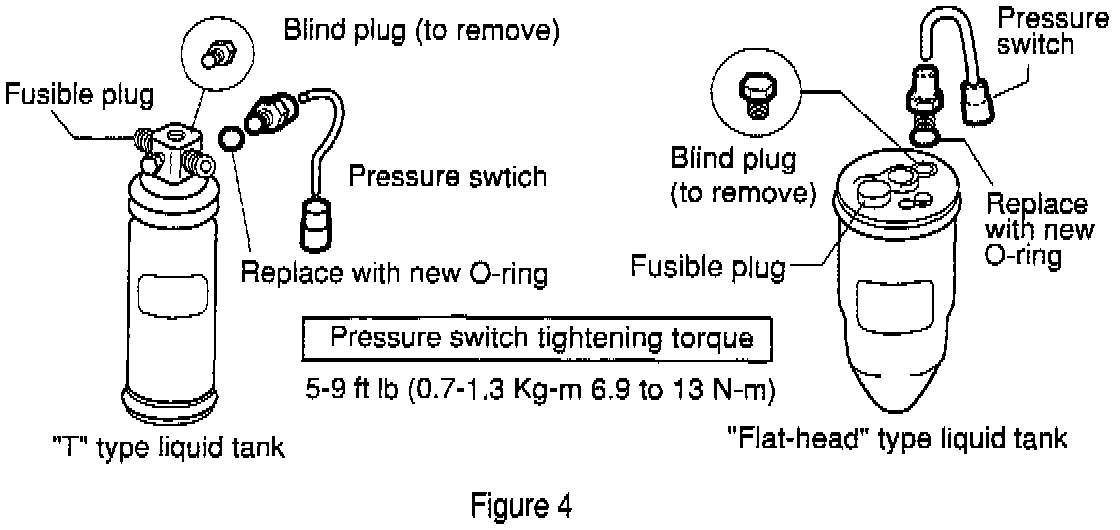 38. Install the old pressure switch into the new LT blind plug port, use a new O-ring. Lubricate with appropriate PAG lubricant.