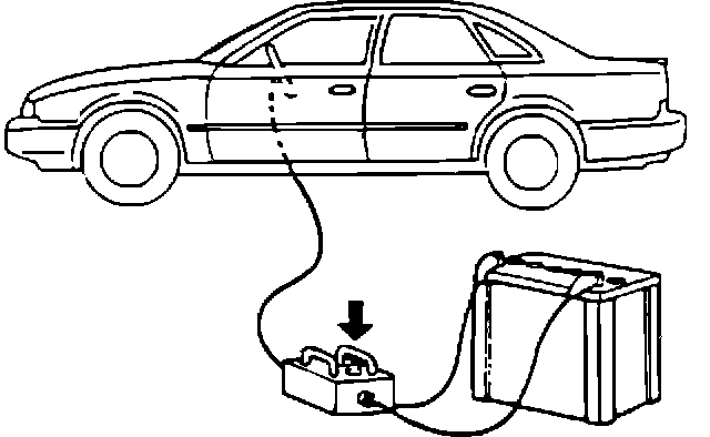 2. Use a volt meter to make sure the vehicle battery is fully charged. Caution: the battery must show voltage of 9.6V or more. Disconnect the battery cables. Remove the battery from the vehicle and place it on dry wood blocks approximately 15 feet away from the vehicle left front door.