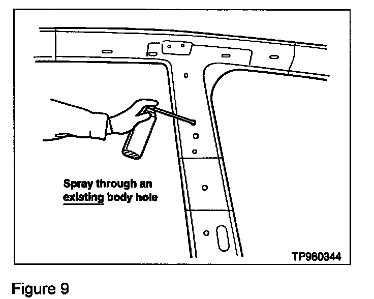 The recessed portions of the body which cannot be painted easily must be coated with anti-corrosive wax (such as Tectyl 517 Bitumen Wax or equivalent - check with local VOC regulations). This is to ensure that there will not be any bare metal exposed (see Figure 9).