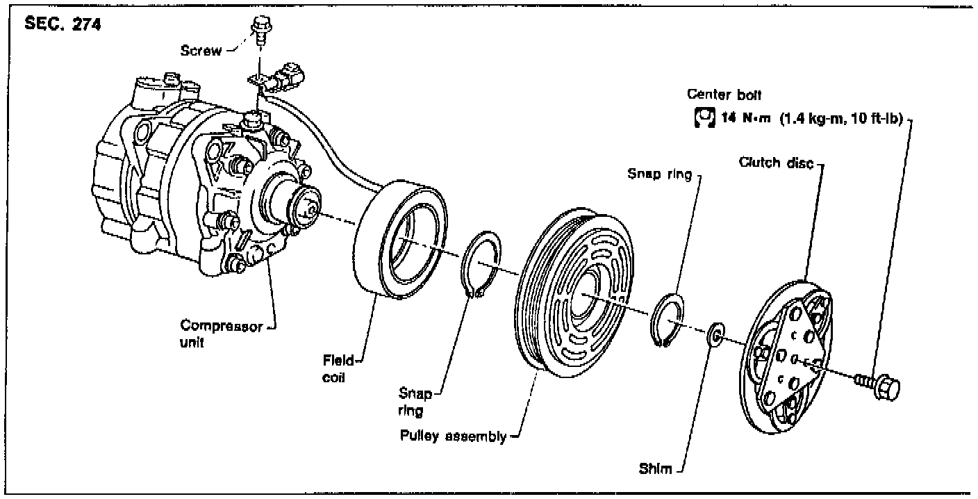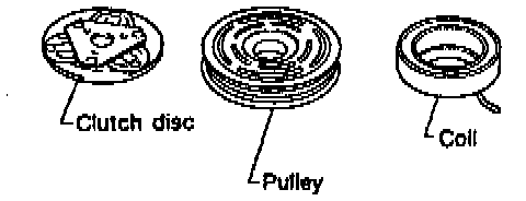 When replacing compressor clutch assembly, always conduct the break-in operation. This is done by engaging and disengaging the clutch about thirty times. Break-in operation raises the level of transmitted torque