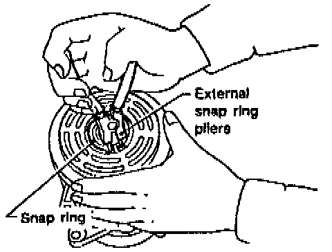 ^ Remove the snap ring using external snap ring pliers.