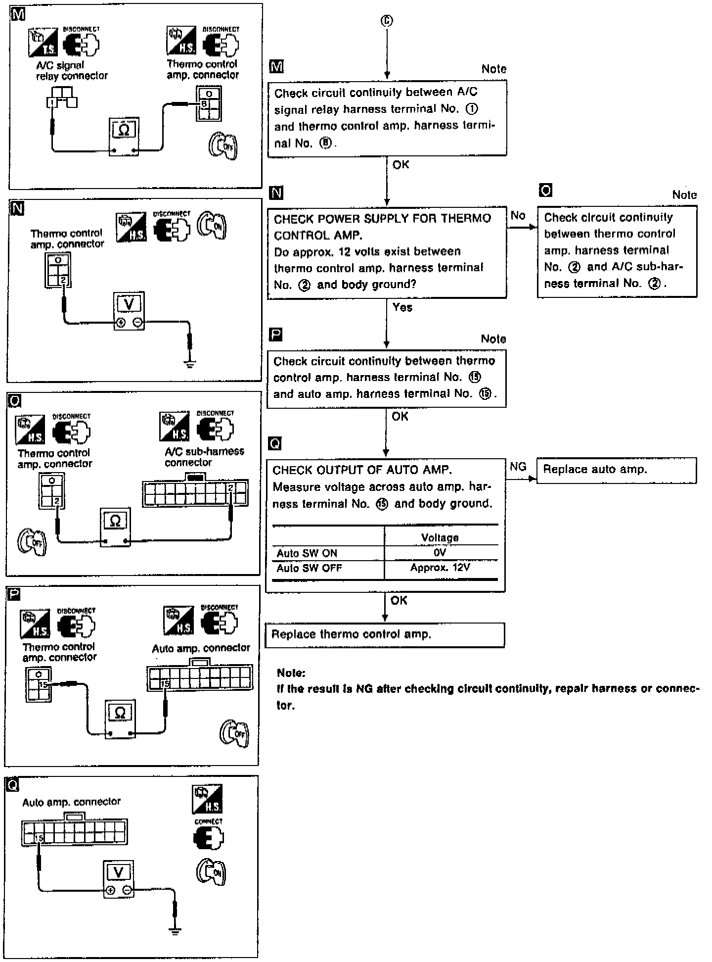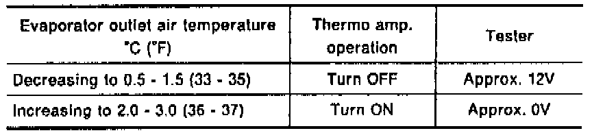 3. Check thermo control amp. operation shown in the table.