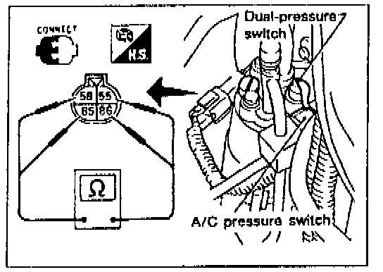 Check continuity between terminals (55) and (58).