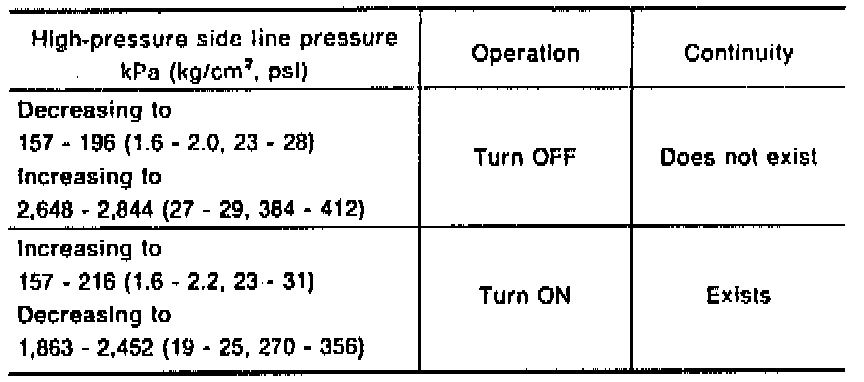 For the G5O model, the dual-pressure switch operation point is changed. The thermo control amp. and the A/C signal relay are additionally adopted.