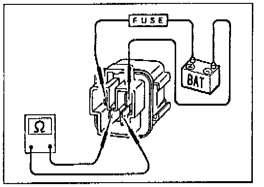 Check circuit continuity between terminals by supplying 12 volts to coil side terminal of relay.