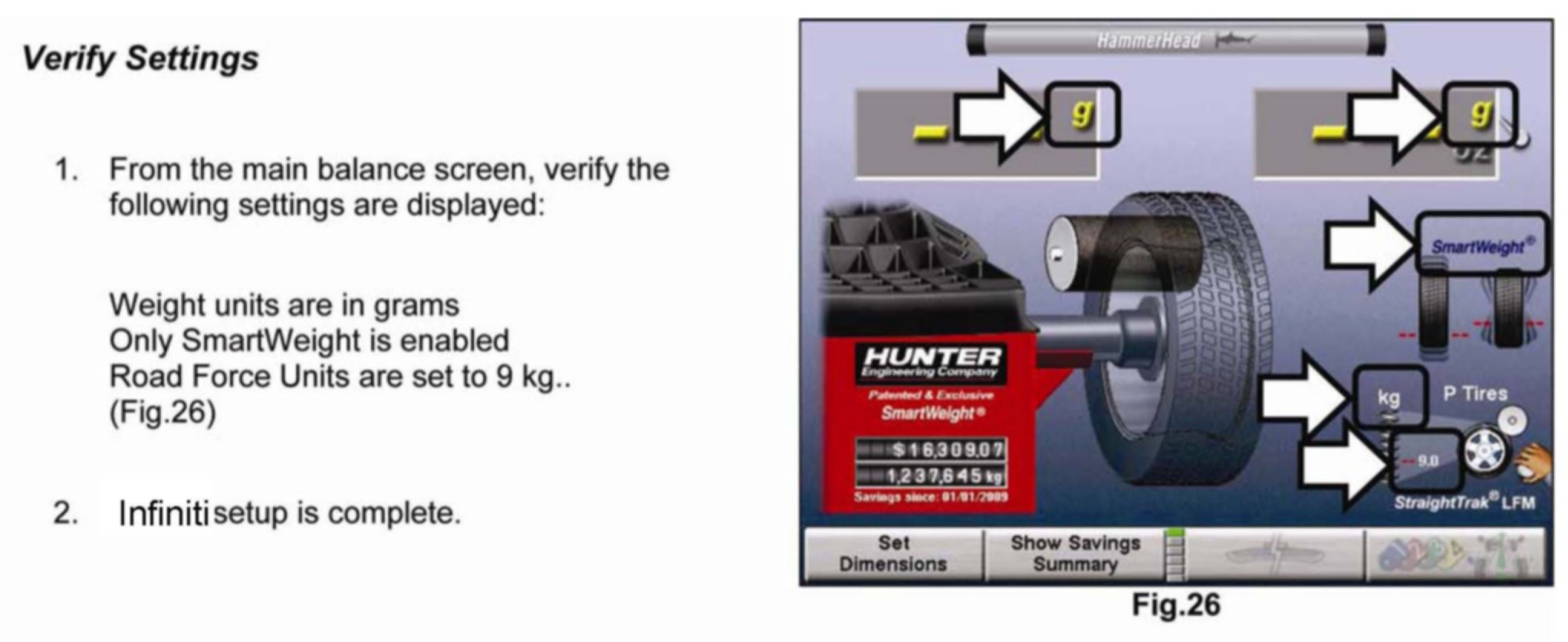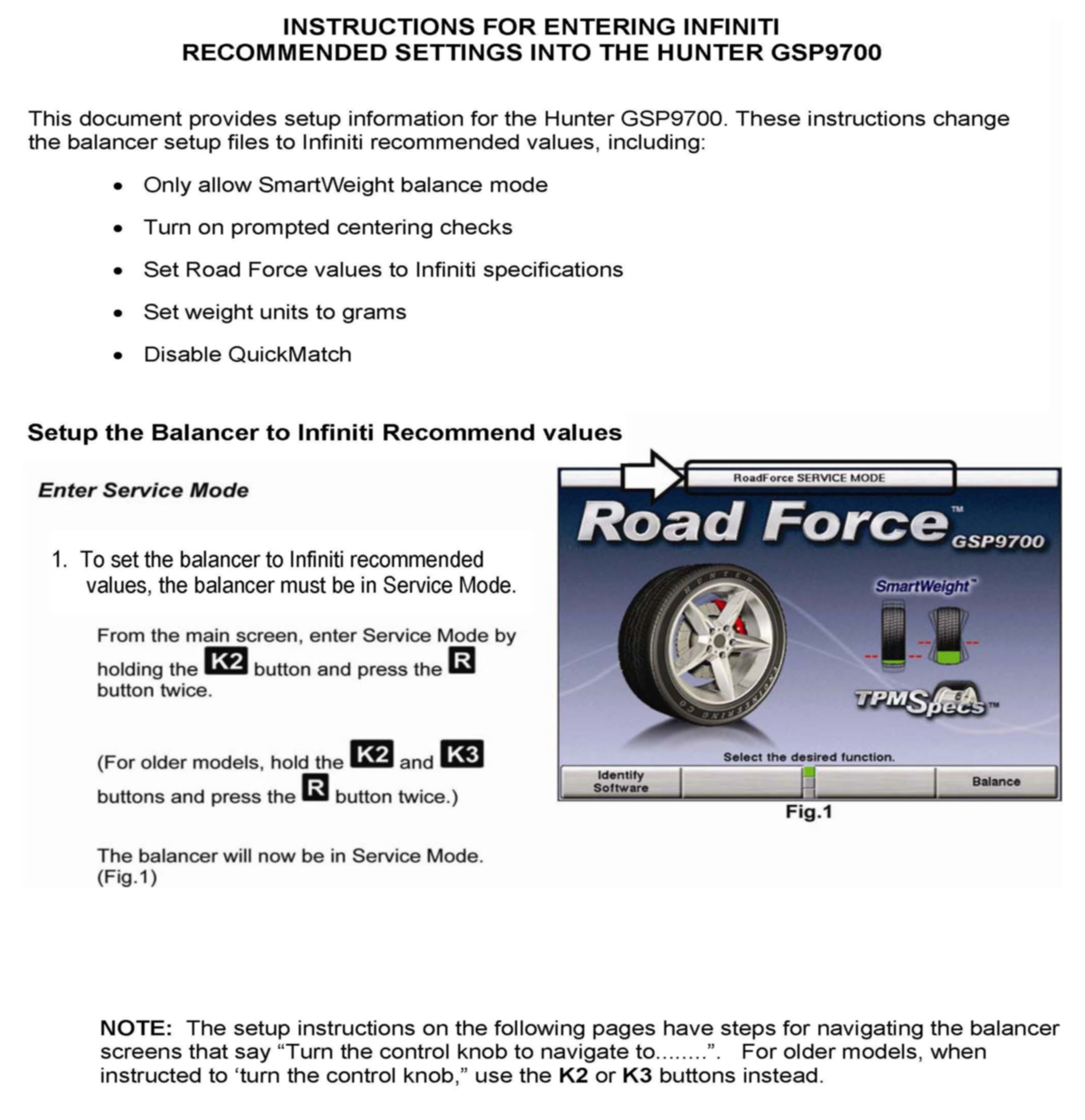 Use the instructions below to set your Hunter GSP9700 to the Infiniti recommended settings for optimum performance with Infiniti wheel / tire assemblies: