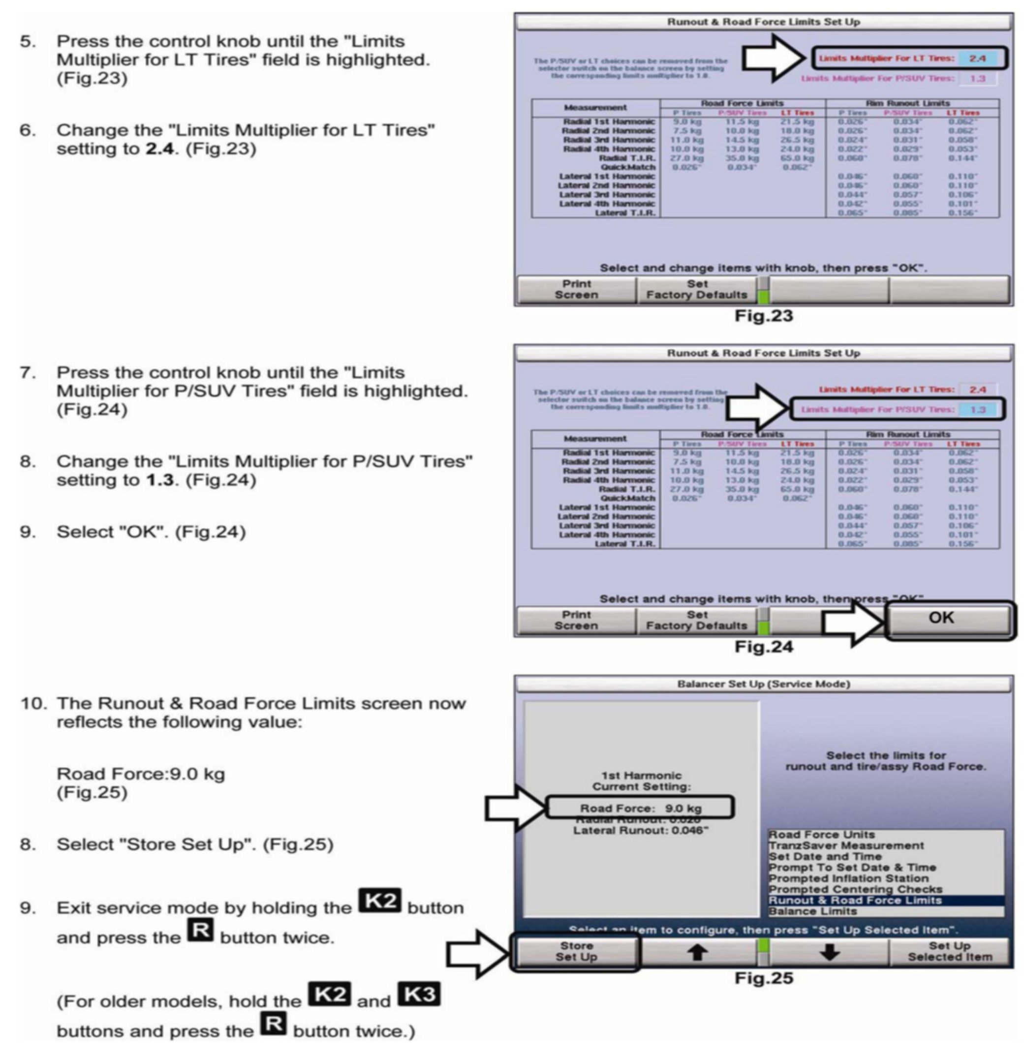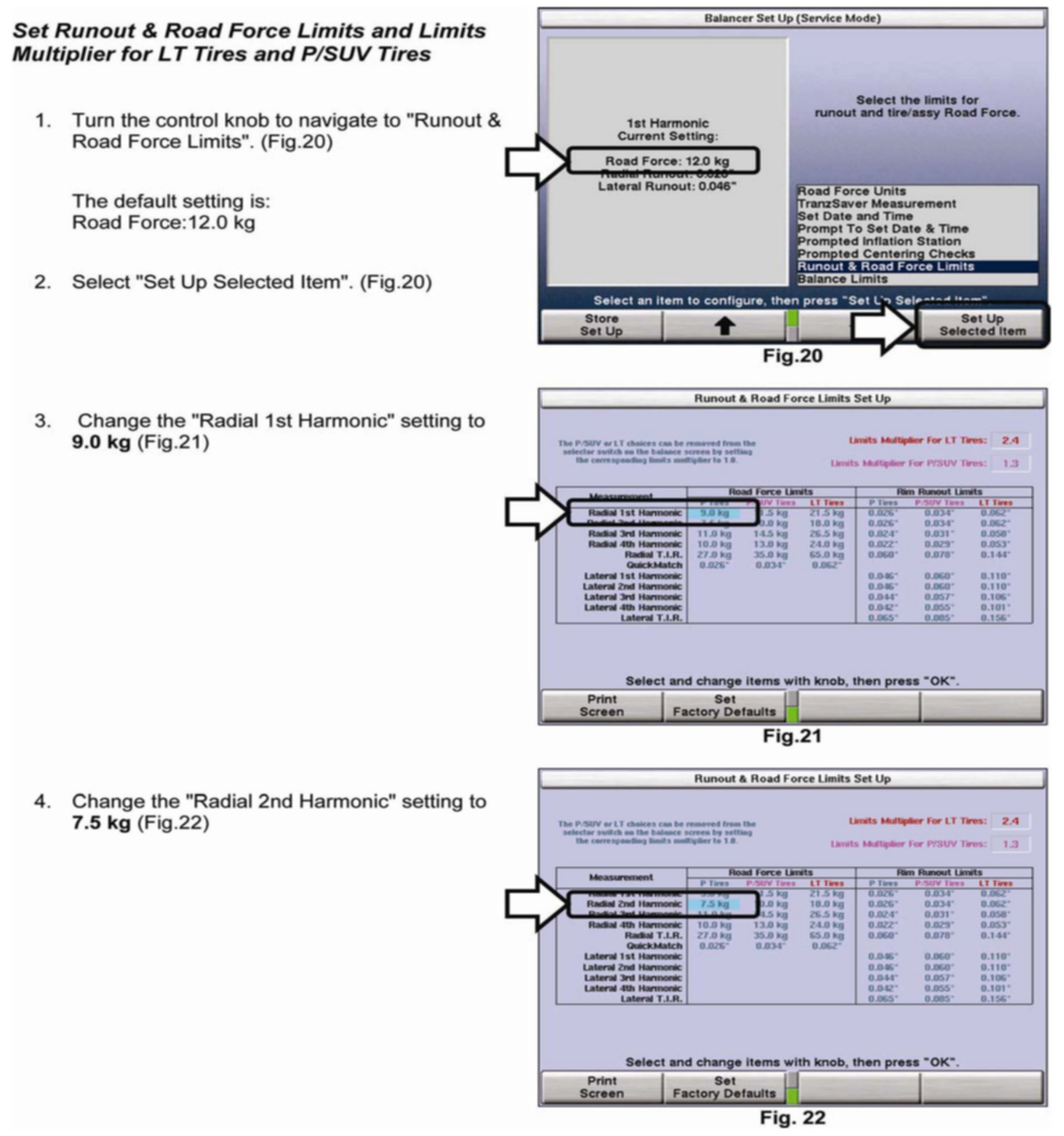 Set Runout & Road Force Limits and Limits Multiplier for LT Tires and P/SUV Tires
