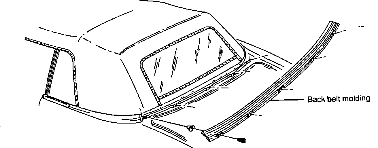 5. Carefully disengage and remove the back belt molding from the quarter belt moldings.