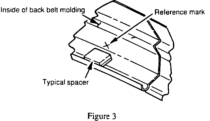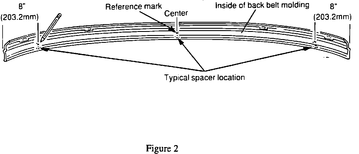 11. Position and center each spacer with respect to the reference mark. Align the spacer to the rolled edge of the molding and press the spacer firmly to the molding (Figure 3).