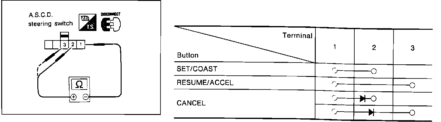 When testing A.S.C.D. steering switch, refer to