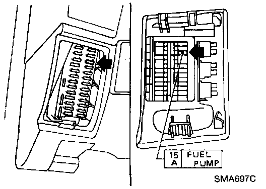 3. Turn ignition switch OFF and reinstall fuse for fuel pump.