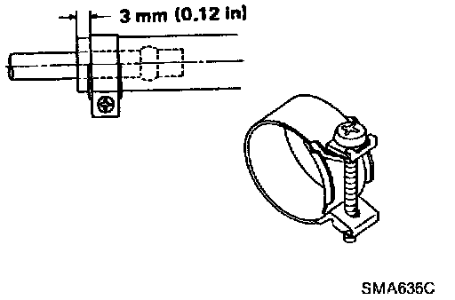 1. Tighten high-pressure rubber hose clamp so that clamp end is 3 mm (0.12 in) from hose end.