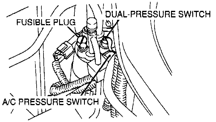1. Disconnect the two tubes from the top of the receiver dryer. Save the two bolts and place blind caps on the end of the tubes.