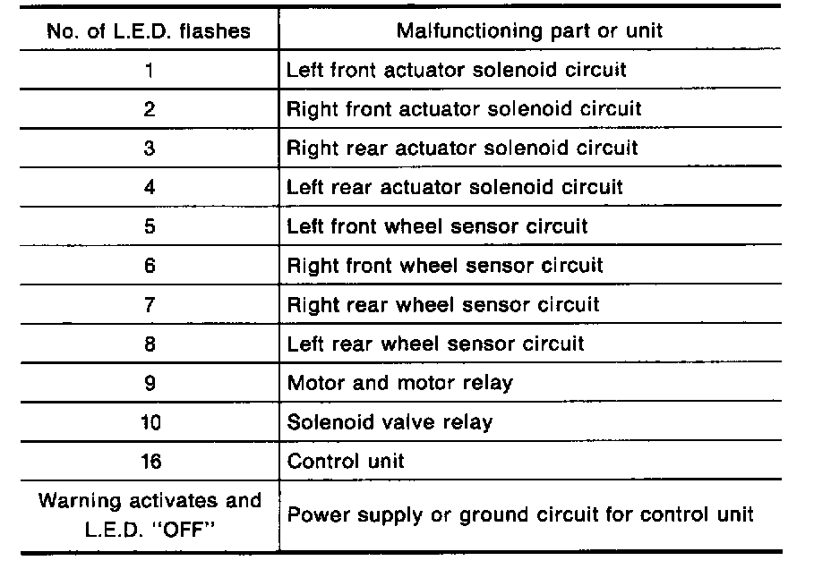 When several malfunctions occur at one time, up to three code numbers can be stored; the latest malfunction will be indicated first.