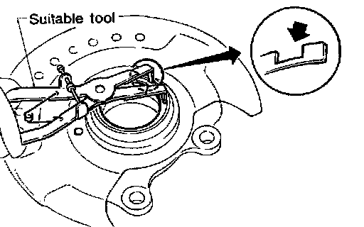 - Drive out hub with inner race (outside) from knuckle with a suitable tool.