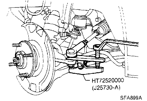 - Remove ball joint securing nut. Separate from knuckle using tool (as for tie-rod).