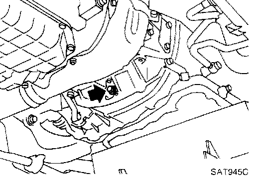 r. Remove bolts fixing A/T to engine.