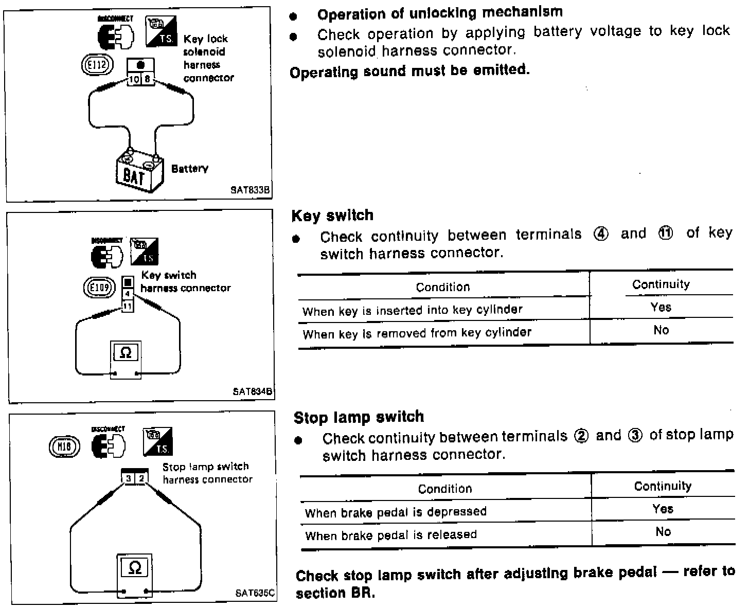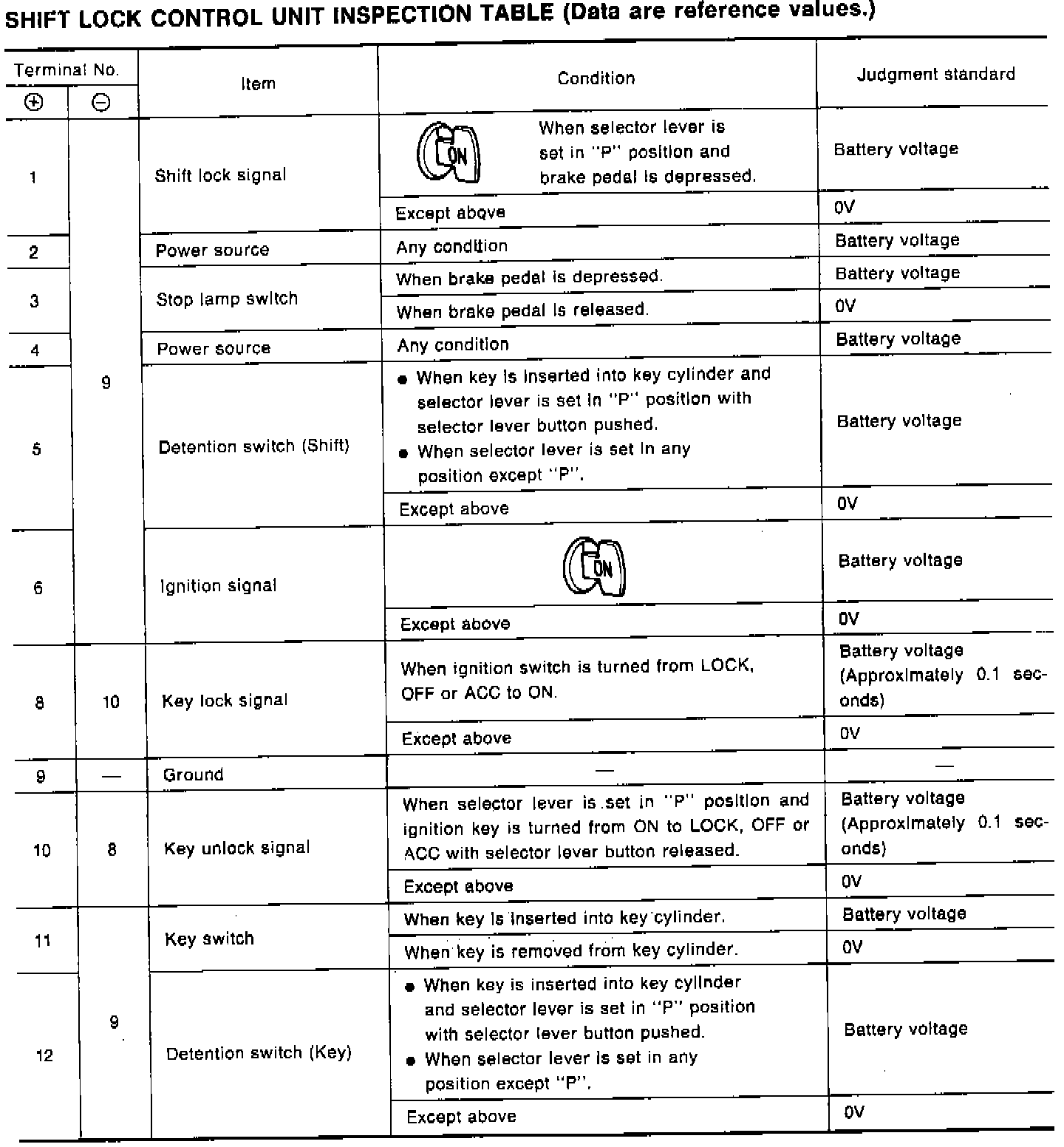 SHIFT LOCK CONTROL UNIT INSPECTION
