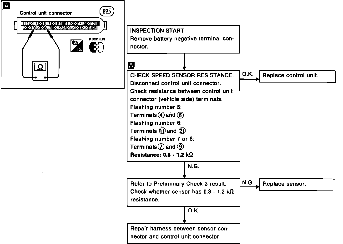 Fig. 35 Diagnostic Procedure 7, Wheel Speed Sensor (LED Flashing Number 5-8).: