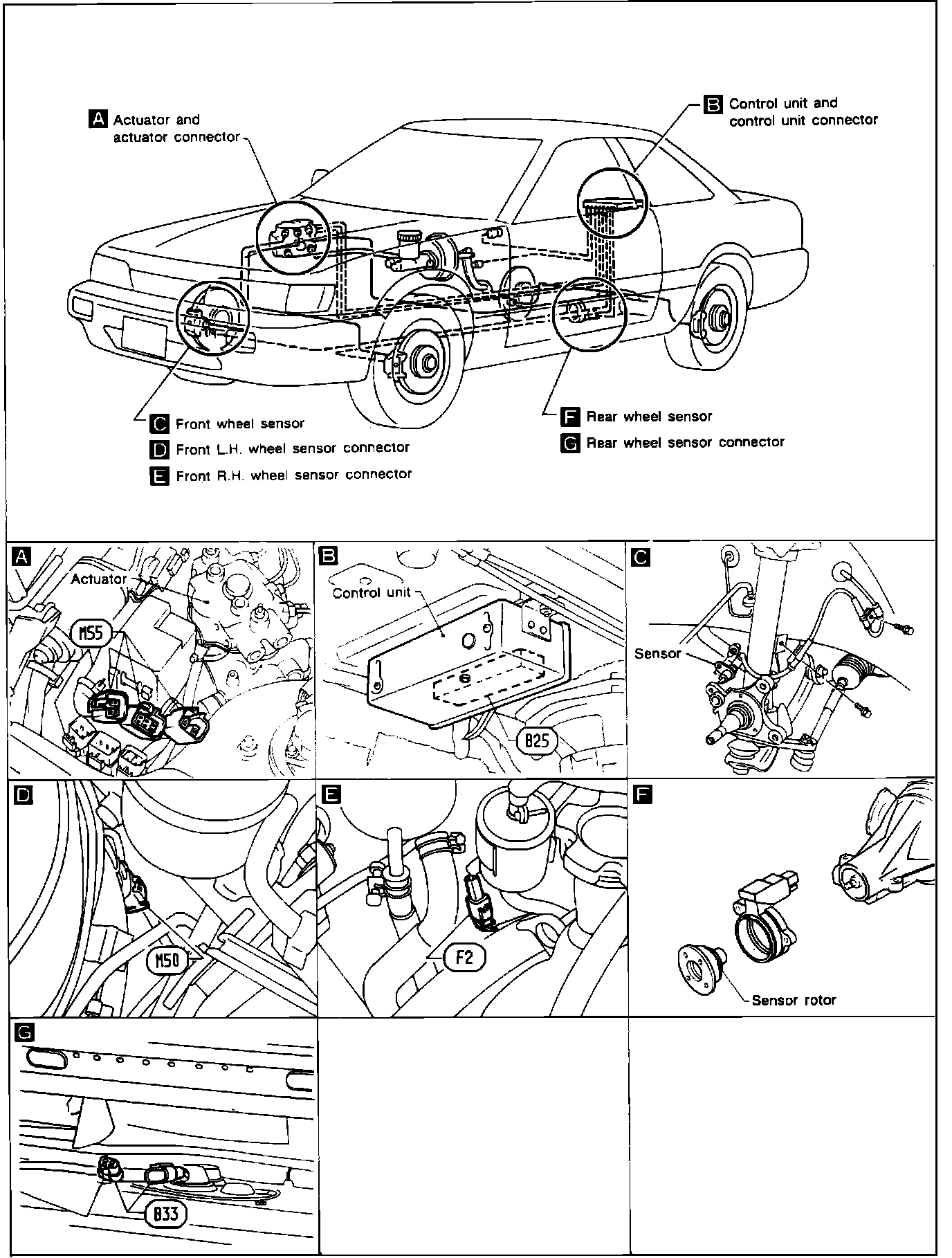 During normal braking conditions, the ABS operates like a conventional system. During heavy braking, however, each wheels braking pressure is modulated according to its speed. To maintain vehicle stability, both rear wheels receive the same signal. There are four major components, Fig. 2, in the ABS which act in unison to control brake operation.