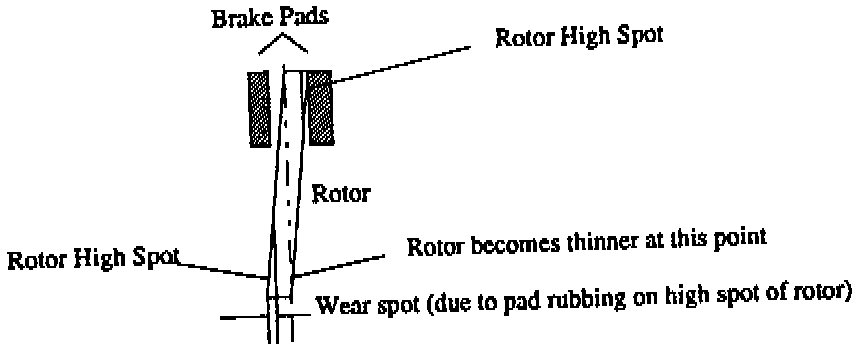 * As the brake pad rubs against the rotor while driving, the high spots on the brake rotor wear slightly.