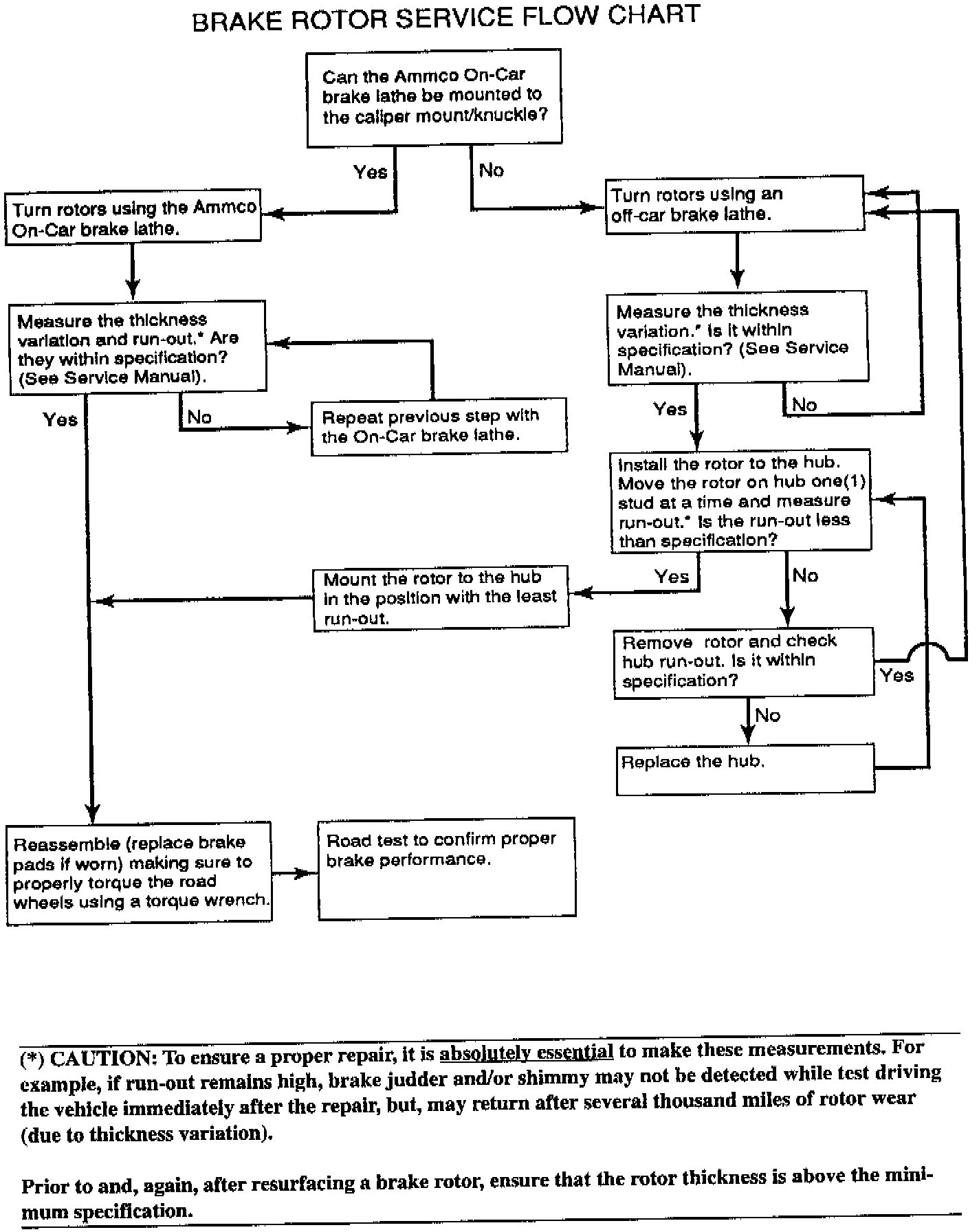 Due to limited clearance, this machine cannot be used on the rear rotors of some vehicles. To resolve this issue, two (2) methods of repair are identified in the illustrated flow chart. Use this chart, as appropriate, when performing brake pad or rotor service.