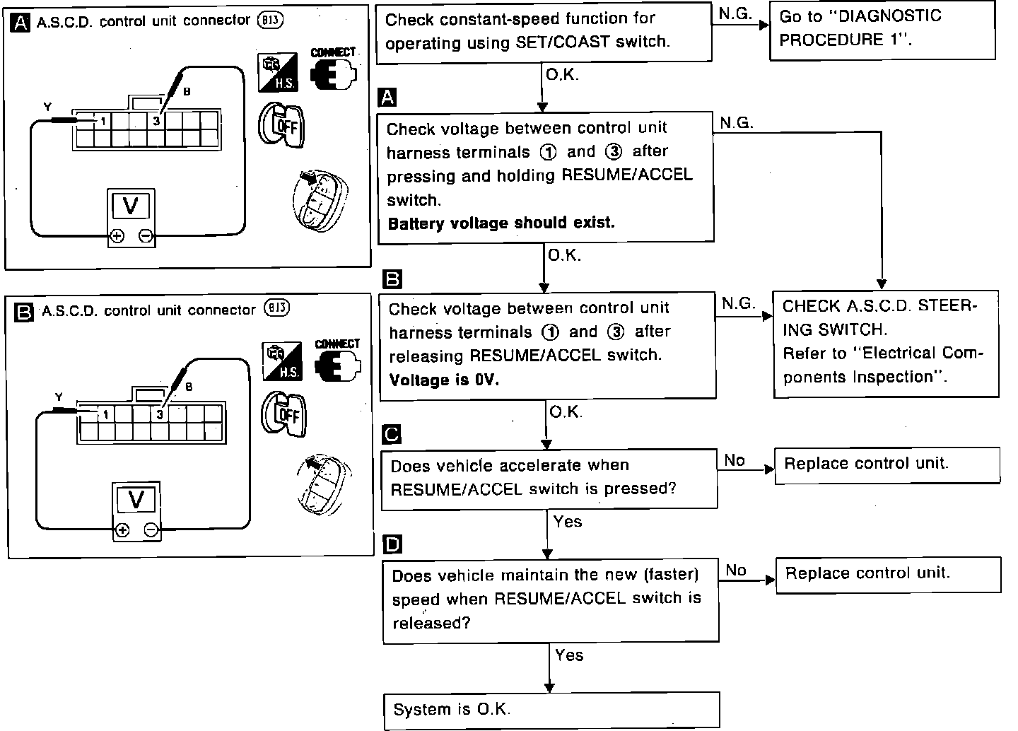 Fig. 33 Diagnostic Procedure 5, ACCEL Switch Will Not Set.: