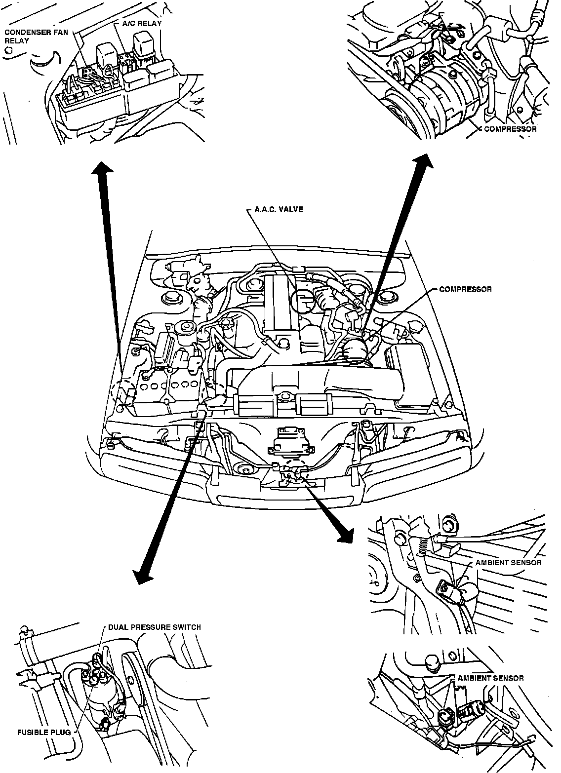 Air Conditioning Component Locations (Engine Compartment).: