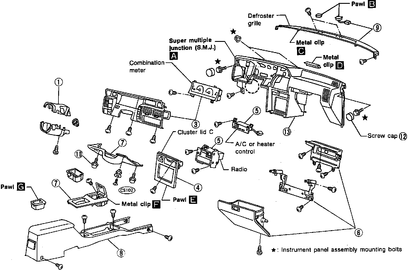 12. Remove fuse box and disconnect S.M.J.