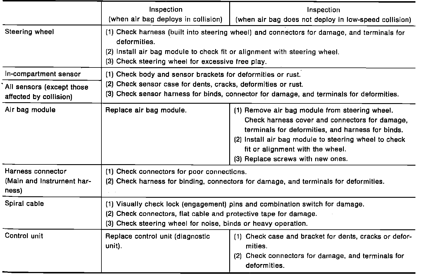 4. If SRS components show any visible damage such as dents, cracks, or deformation, replace as necessary.