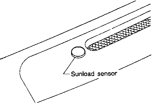 The sunload sensor is located on the right defroster grille. It detects sunload entering through windshield by means of a photo diode. The sensor converts the sunload into a current value which is then input to the auto amplifier.