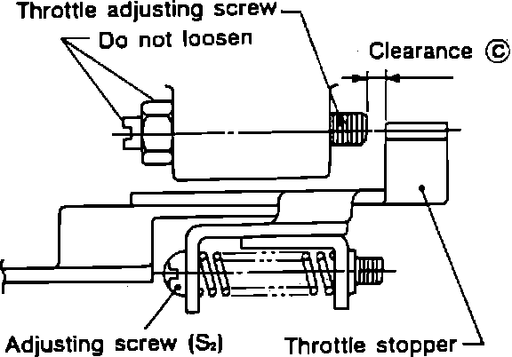 6. Adjust clearance C between throttle stopper and throttle adjusting screw to .0244-.0291 inch by turning adjusting screw S2, Fig. 8.