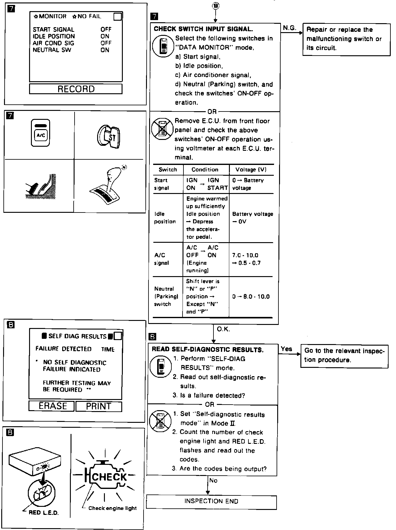Refer to Fig. 41. for basic inspection procedure. Some diagnostic procedures may use the CONSULT unit, refer to ``Consult System Usage'' for proper application and installation.