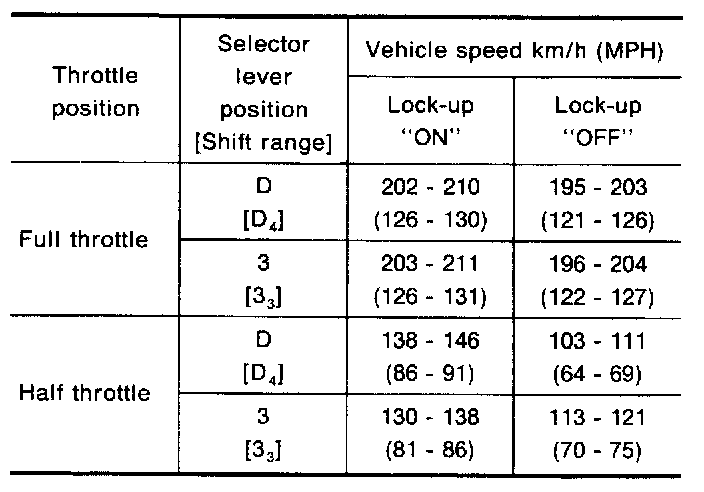 Vehicle Speed When Performing Lock-Up (Reference Value)