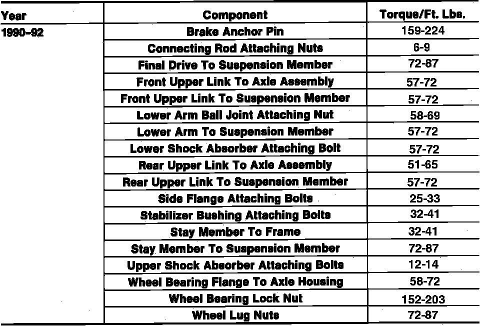 Tightening Specifications: