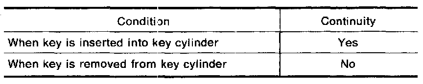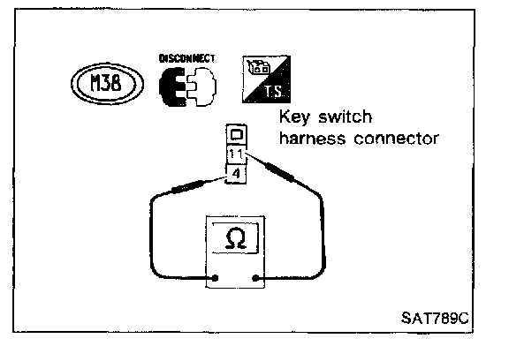Check continuity between terminals (4) and (11) of key switch harness connector.