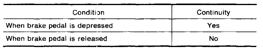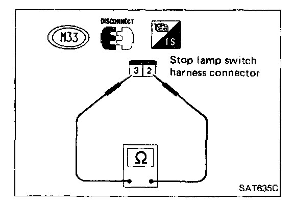 Check continuity between terminals (2) and (3) of stop lamp switch harness connector.
