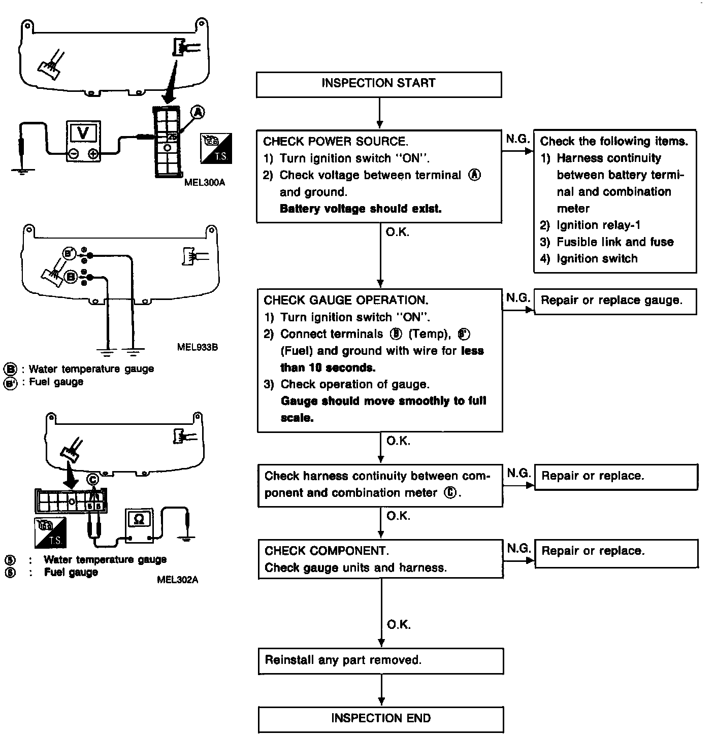 Inspection/Fuel Gauge, Water Temperature Gauge And Oil Pressure Gauge: