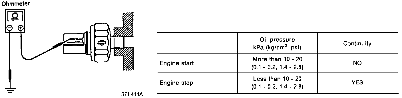 Check the continuity between the terminals of oil pressure switch and body ground.