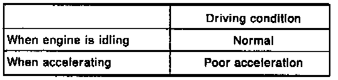 If the mass air flow sensor output voltage is above or below the specified value, the ECCS control module (ECM) senses an mass air flow sensor malfunction. in case of a malfunction, the throttle position sensor substitutes for the mass air flow sensor. Though mass air flow sensor is malfunctioning, it is possible to drive the vehicle and start the engine. But engine speed will not rise more than 2,400 rpm in order to inform the driver of fail-safe system operation while driving.