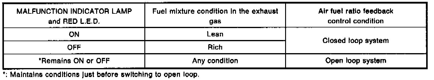 In this mode, the MALFUNCTION INDICATOR LAMP and RED L.E.D. display the condition of the fuel mixture (lean or rich) which is monitored by the heated oxygen sensor.