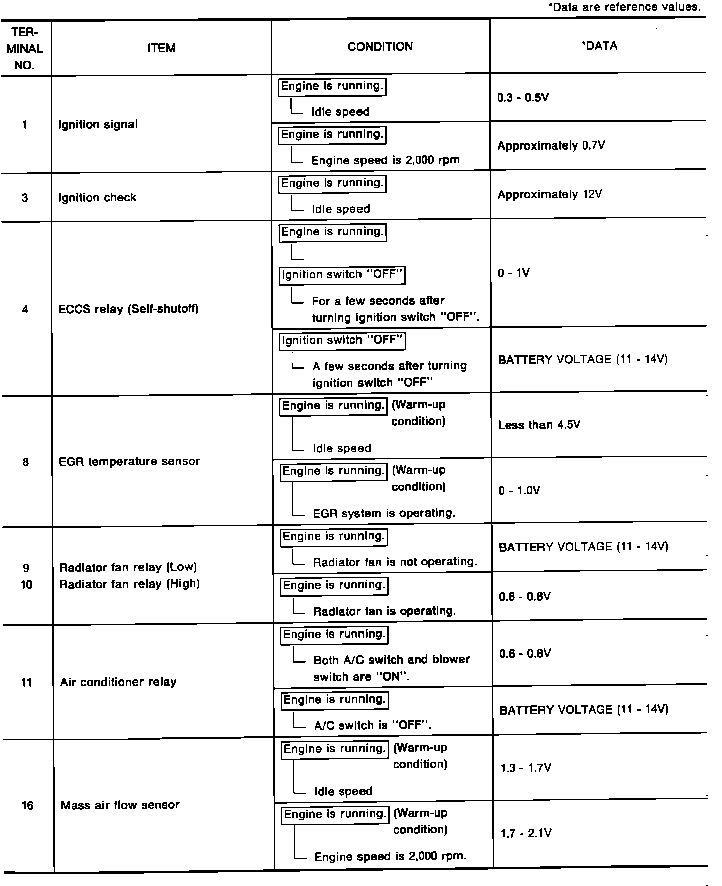 NOTE: Testing of circuit voltages can be done at the ECM connector by CAREFULLY backprobing the connector. Use a high-quality digital DVOM.