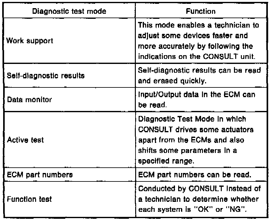 CONSULT Test Mode Function Description